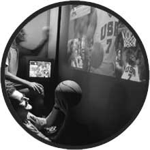 The challenge was to find a way recognizing the different objects. We did not want to put a battery in a basketball (not a very "natural" interface), so decided to use vision detection. A camera pointing at the screen is triggered by a microphone that picks up the sound when an object is thrown at the screen. It then looks at the screen and tries to identify the object by its colour and size. The problem we encountered was that because you might have watched basketball, and thrown a baseball, the camera might also pick up the basketball that was shown on screen. So we came up with a unique way of polarizing the light coming out of the projector, and making it invisible for the camera.